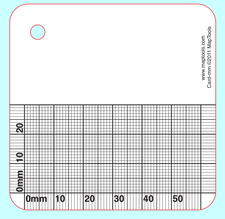 Millimeter grid card with white background on one side, black on the other. Useful for examining snow crystals, sand grains, soil characteristics, or small artifacts.