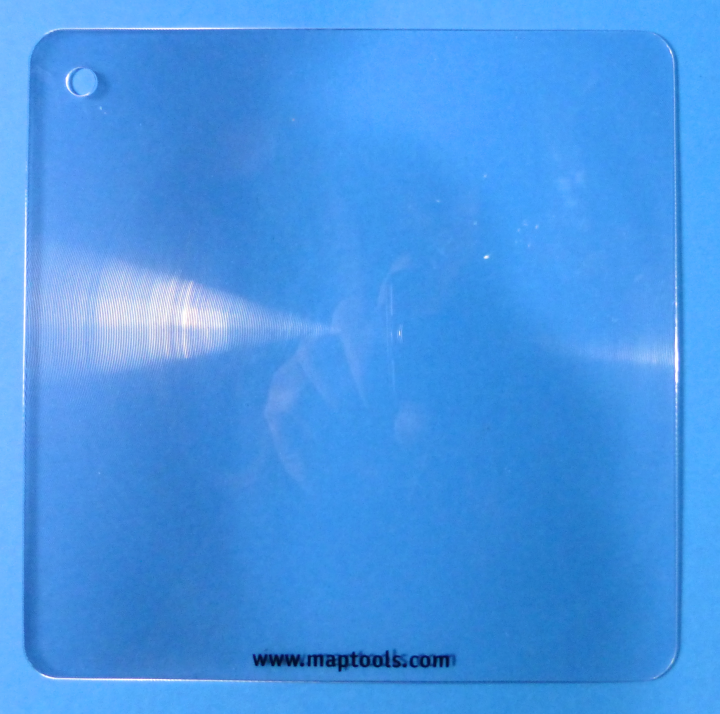 These small plastic fresnel magnifiers offer a light weight, non-breakable alternative to your reading glasses or a glass lens magnifier. They provide a 2X magnification when held about 2” away from the map. These magnifiers have a hole in the corner for a lanyard and come packaged in a protective sleeve. They are available in two sizes.