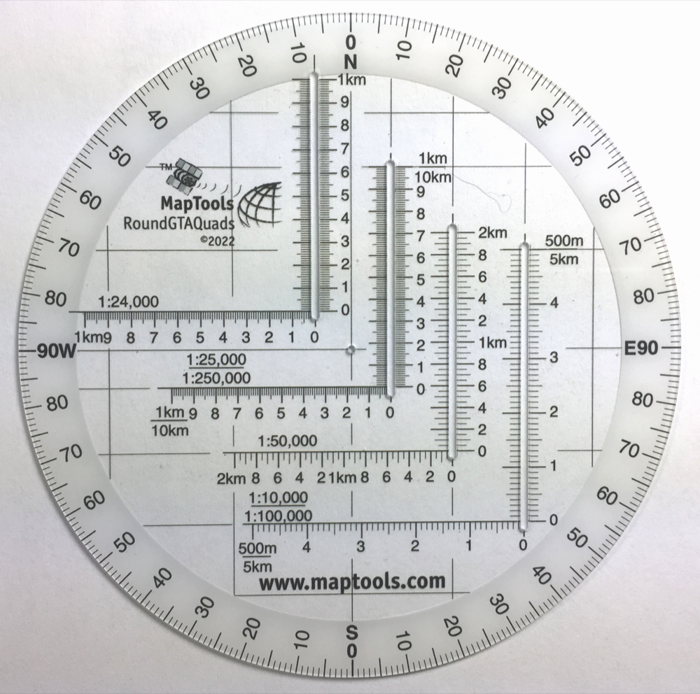 Round Military Coordinate Scale and Protractor Large Print, Compass Rose in Degrees Part Id: RoundGTA, Made in US, UPC: 824249150490 |