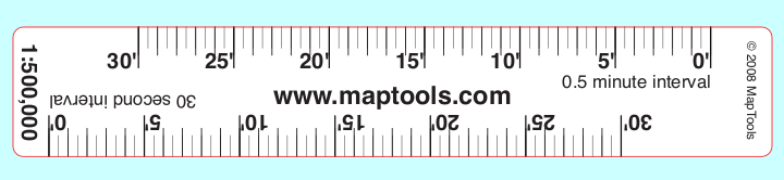 On the front side, the ruler has minutes and seconds on one edge and decimal minutes on the other edge, allowing you to use either notation. On the back side, the ruler has distance in meters on one edge, and distance in either miles on the other edge.