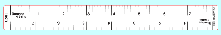 The front side has two 8 inch scales, one marked in 1/16ths of an inch and the other in 1/10ths of an inch. The flip side has a 200 millimeter ruler, and 10 numeric unit conversion factors listed. This is an excellent tool for working with odd scale maps where you need to use a ratio calculation to determine distances and coordinate readings.