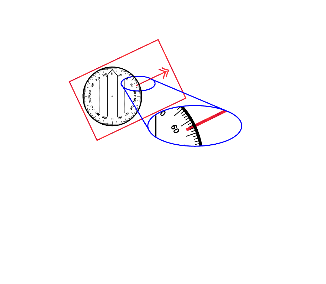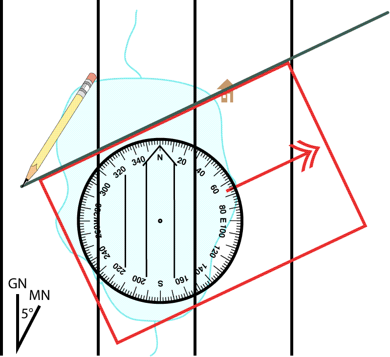 - Plotting a bearing using a straight edged lensatic compass